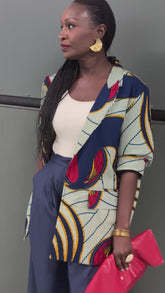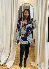 The African print oversized blazer is a bold and stylish piece, handcrafted with care in Tanzania. Made from high-quality, ethically sourced fabric. Its oversized fit offers a chic, contemporary silhouette, combining classic design with modern fashion sensibilities. Perfect for layering, it can be dressed up or down, making it a versatile statement piece for any wardrobe.