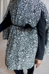 Our top-selling and incredibly versatile piece caters to all your fashion requirements. This one-size-fits-most stylish and functional cape seamlessly transforms into a dress, jacket, or wrap, effortlessly transitioning from the office to happy hour, brunch outings to formal functions, and even serving as a cozy travel wrap on the plane. Crafted to meet your everyday needs, our cape ensures you stay chic without compromising comfort.