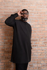 Introducing our meticulously handmade men's shirt. This shirt combines classic design with modern convenience, featuring mid collar, brown buttons, and side slit for easy access to your pants pockets.
