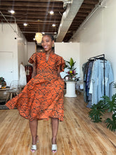Elevate your wardrobe with the Neema Batiki Dress, a stunning fusion of tradition and modern flair. Crafted from vibrant orange and dark green hand-dyed batiki fabric, this dress is a celebration of culture, confidence, and timeless style. With its playful movement and flattering silhouette, it’s perfect for brunch, a gallery stroll, or your next power moment.