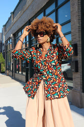 • Dynamic African Print: A bold blend of orange, brown, black, and teal creates a captivating pattern that embodies strength and creativity.