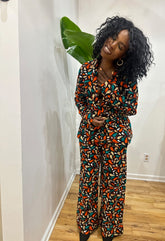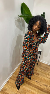Exude confidence and sophistication with this impeccably tailored African print power suit, designed for the modern professional woman. With its flattering blazer and flexible wide-legged pants, this ensemble is as empowering as it is stylish.