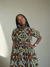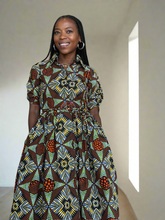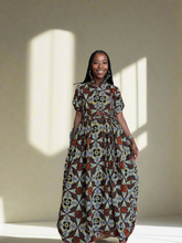 Strength meets style in the Imara Dress, our standout African print maxi for the season. Designed in geometric motif, rich earth and jewel tones, it combines a structured bodice with a flowing skirt that commands attention yet timeless.